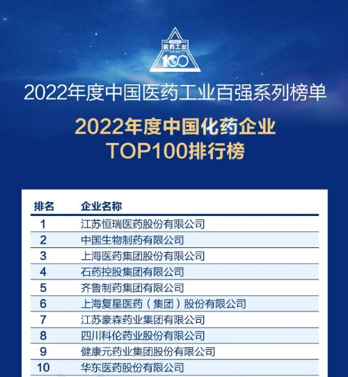 佳音频传!金年会医药再次蝉联中国化药企业百强榜首