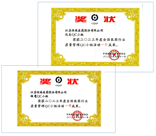 近日,第44次全国医药行业质量管理(QC)小组成果发表交流在甘肃兰州举行。会上,金年会医药远志QC小组、雏鹰QC小组荣获2023年度全国医药行业质量管理QC小组活动一等奖。